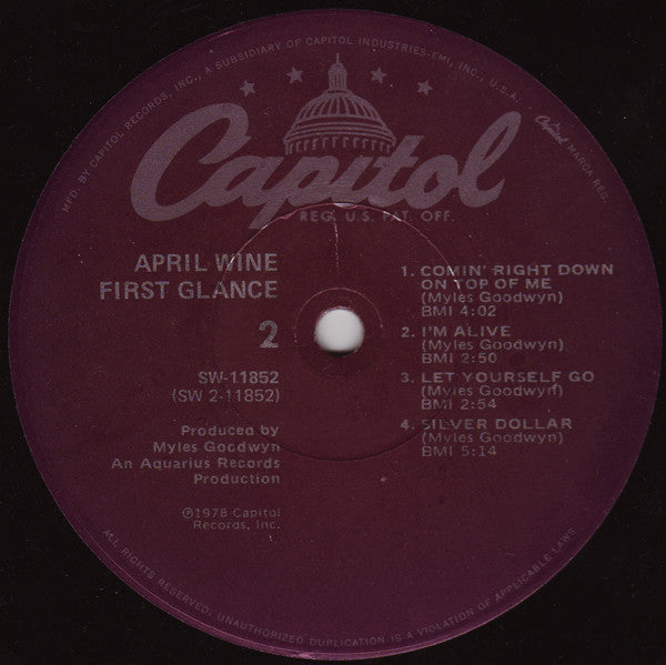 [l313266 pressing. An Aquarius Records Production A2 to B2 recorded at Studio Tempo. A1, B3 & B4 recorded at Le Studio (Morin Heights) Re-Mix for all tunes at Le Studio (Morin Heights) Mastered at Sterling Sound ℗ 1978 Capitol Records, Inc. © 1978 Capitol Records, Inc. Manufactured by Capitol Records, Inc. a subsidiary of Capitol Industries-EMI, Inc.