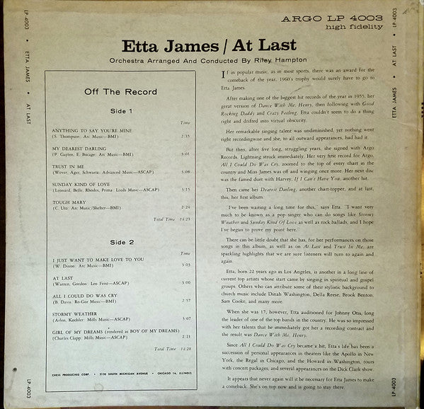Etta James - At Last! (LP, Album, Mono) (G+)