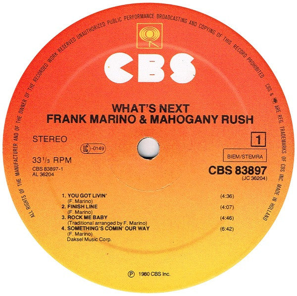 Frank Marino & Mahogany Rush - What's Next (LP, Album) (NM or M-)