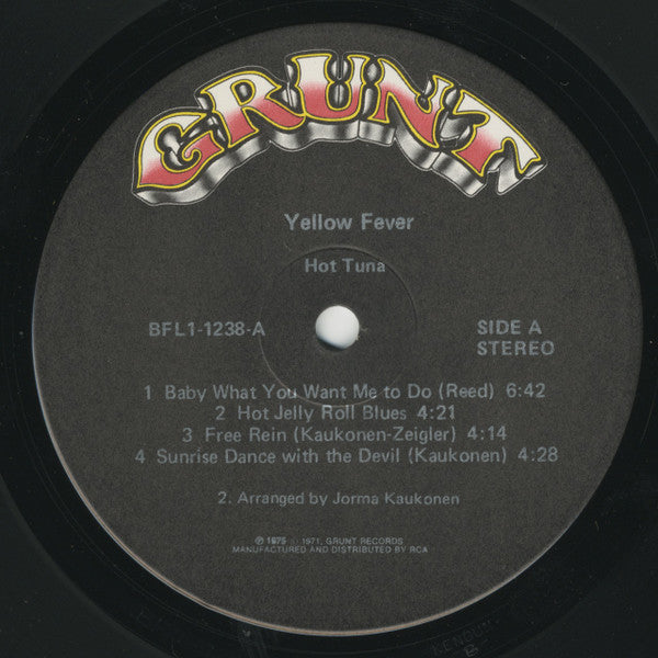 This version has no writing credit for A2 on labels, but has "2. Arranged by Jorma Kaukonen" printed below tracklist. Recorded and Mixed at Wally Heider Studios, San Francisco Mastered at Kendon Recorders, Burbank Production Coordinator Pat Ieraci (Maurice)