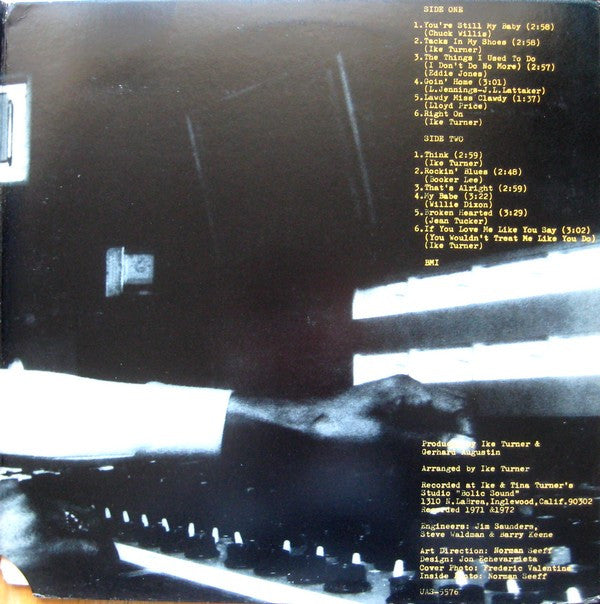 Gatefold embossed cover sleeve. Recorded at Ike & Tina Turner's studio "Bolic Sound", Inglewood, CA in 1971 & 1972.