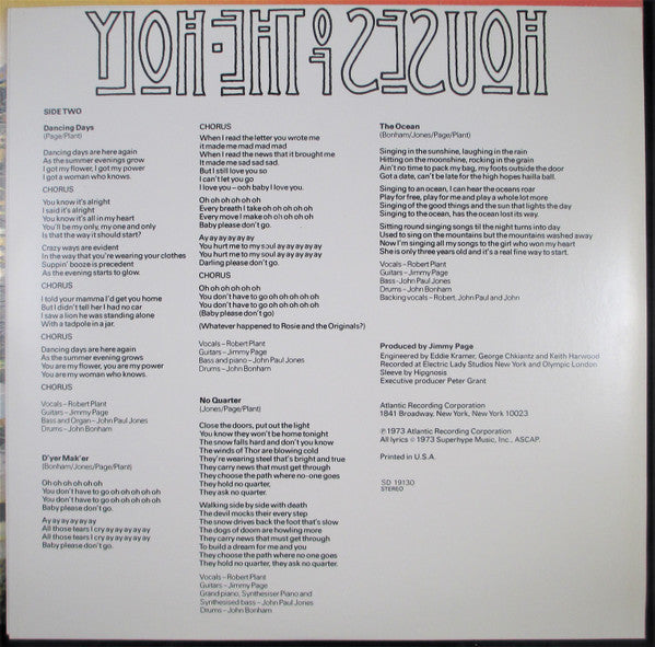 Led Zeppelin : Houses Of The Holy (LP, Album, Club, RE)