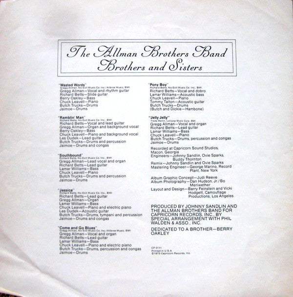 Recorded at Capricorn Sound Studios, Macon, Georgia.