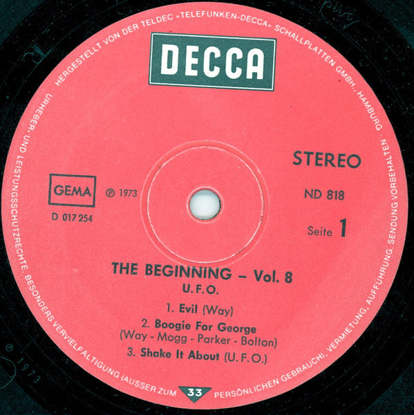 UFO (5) - The Beginning Vol. 8 (LP, Comp) (VG+)