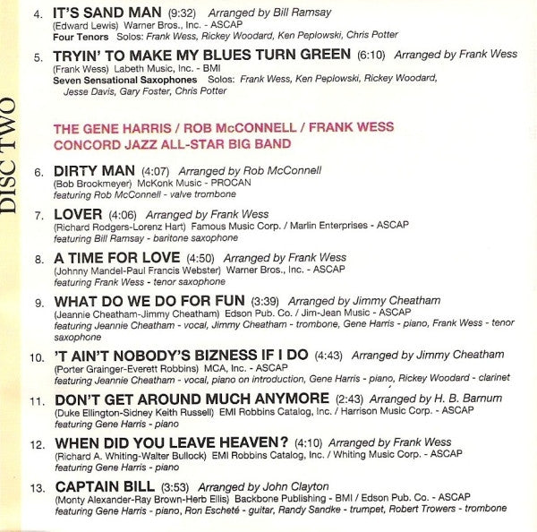 . The Gene Harris/Rob McConnell/Frank Wess Concord Jazz All-Star Big Band