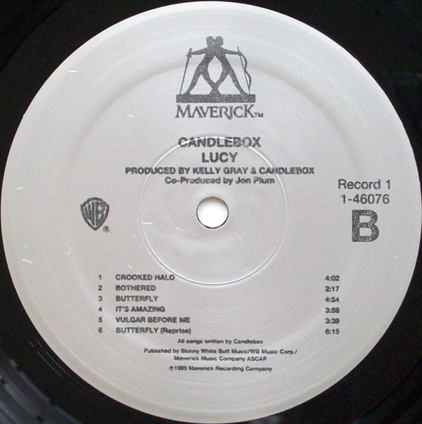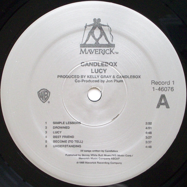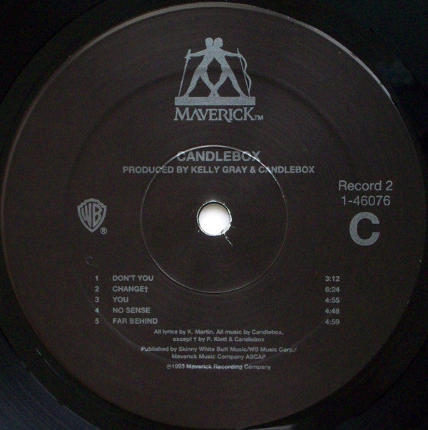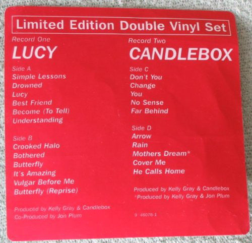 Limited Edition Double Vinyl Set put together to promote the band after little sales of their second album. "Candlebox" recorded at London Bridge Studios (Seattle) March to April 1993, except "Far Behind" & "You" recorded at Bob [Robert Lang Studios Easter of '92. "Lucy" recorded at London Bridge Studios (Seattle); March to June 1995. Mixed at London Bridge Studios and Bad Animals Studios (Seattle). Mastered at Future Disc, Los Angeles. (C),(P) 1993, 1995 Maverick Recording Company Gatefold Cover shows one photo upways & one head down. Marketed by Warner Bros. Records Inc., a Time Warner Company.
