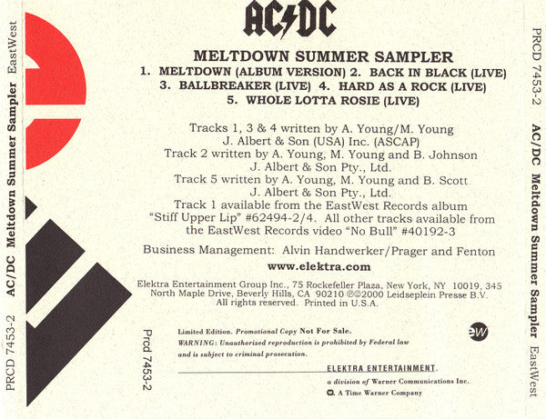 Tracks 1,3 & 4 J.Albert & Son (USA) Inc. (ASCAP) Tracks 2 & 5 J.Albert & Son Pty., Ltd. Track 1 available from EastWest Records album "Stiff Upper Lip" #62494-2/4. All other tracks available from EastWest Records video "No Bull" #40192-3 ℗© 2000 Leidseplein Presse B.V. Printed in U.S.A.
