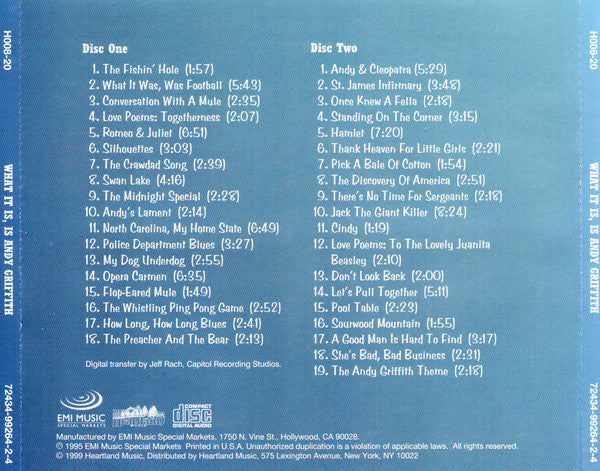 Andy Griffith - What It Is, Is Andy Griffith (Andy's Greatest Comedy Monologues & Old-Timey Songs) (2xCD, Comp) (NM or M-)