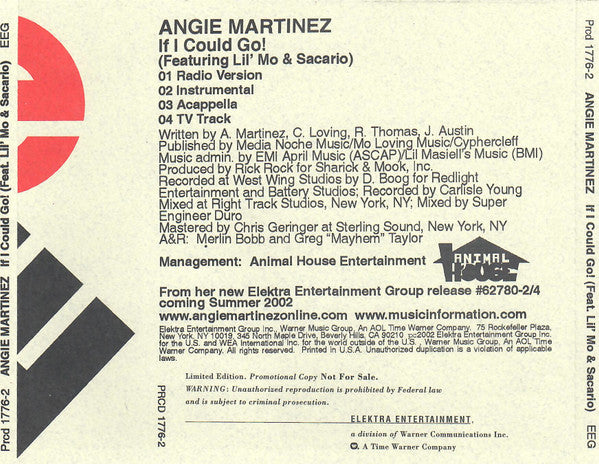 Angie Martinez Featuring Lil' Mo & Sacario - If I Could Go! (CD, Single, Ltd, Promo) (NM or M-)