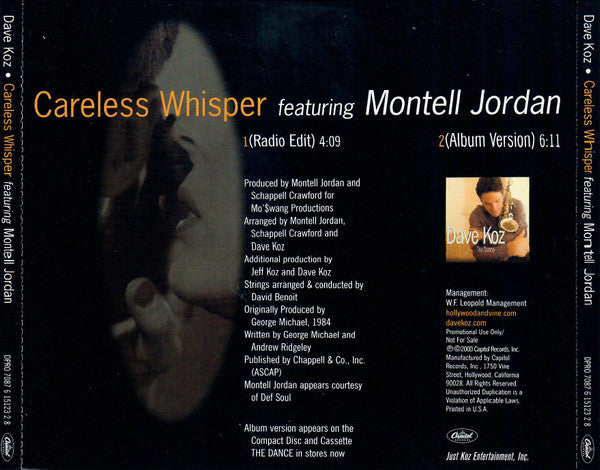 Dave Koz Featuring Montell Jordan : Careless Whisper (CD, Single, Promo)