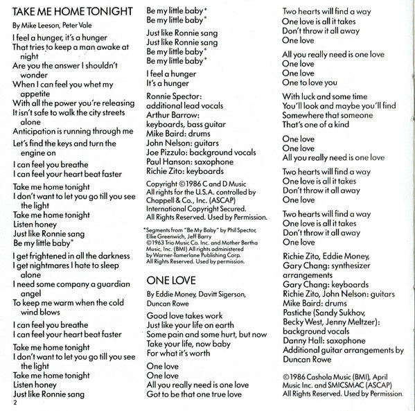 1. Take Me Home Tonight (Be My Baby) 3:30