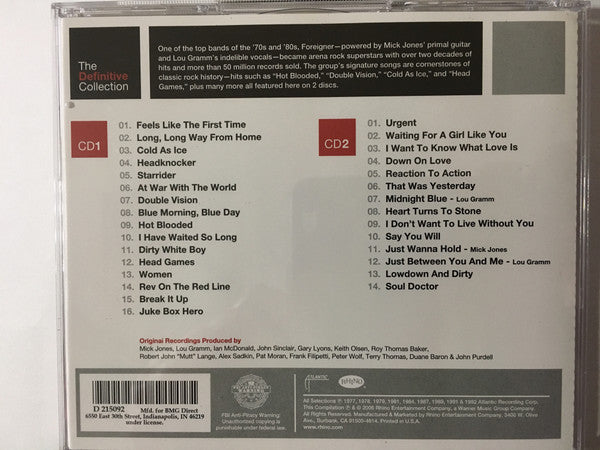 Foreigner : The Definitive Collection (2xCD, Comp, Club, RM)