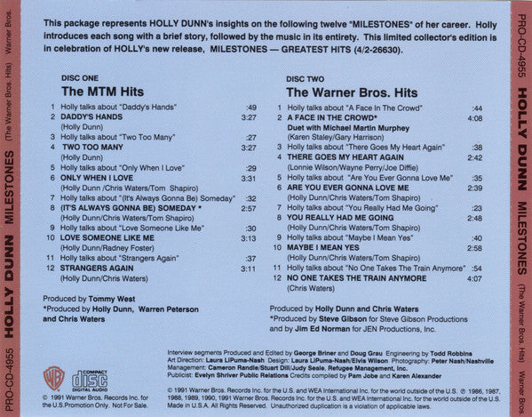 Holly Dunn : Milestones (Greatest Hits) (2xCD, Ltd, Promo)
