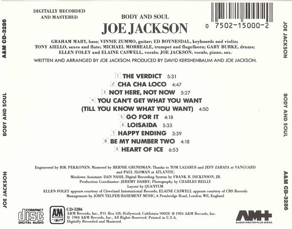 Digitally Recorded and Mastered. Made in U.S.A. Issued in standard jewel case, with six-panel insert. ℗ 1984 A&M Records, Inc. © 1984 A&M Records, Inc. Catalog number CD-3286 on case. Catalog number CD 3286 on disc label. All Songs Published by Pokazuka Limited. Administered In The U.S. By Almo Music Corp. (ASCAP) Recorded at an ancient Masonic Lodge, normally used by neighbouring Vanguard Studios. Control room built in an office at Vanguard. Vocals and mixing completed at Atlantic's Studio B on 60th and Broadway.