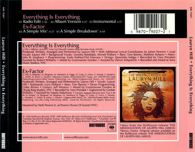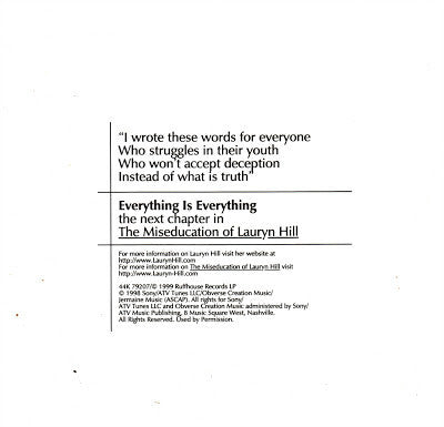 Taken From The Ruffhouse Release The Miseducation Of Lauryn Hill. Tracks 4 & 5 Are Bonus Tracks