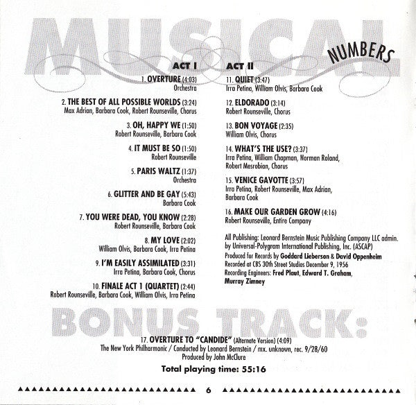 2. Max Adrian, Barbara Cook, Robert Rounseville, "Candide" Original Broadway Cast, Chorus - The Best Of All Possible Worlds 3:24