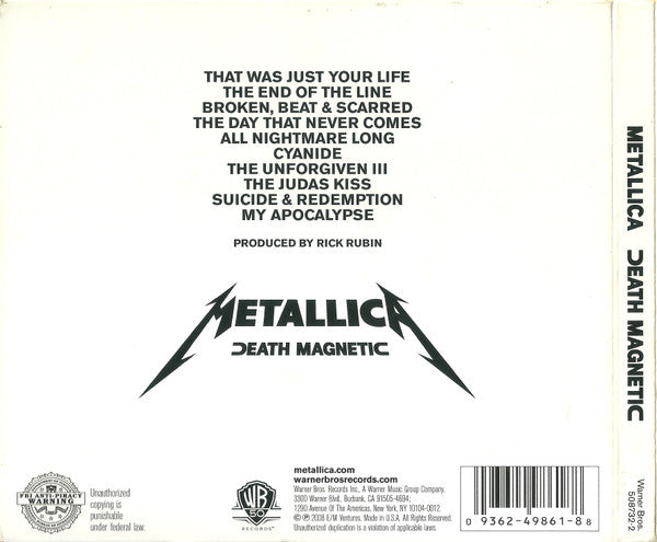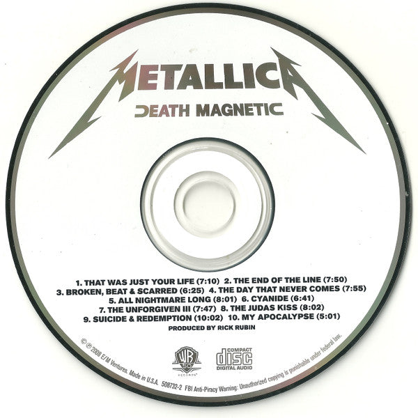 © ℗ 2008 E/M Ventures. Made in U.S.A. Recorded April 2007 - May 2008 at Sound City Studios in Van Nuys, CA; Shangri La Studios in Malibu, CA & HQ in San Rafael CA. Mixed at Sunset Sound Factory, Los Angeles, CA & Punker Pad West, Van Nuys, CA. All songs © 2008 Creeping Death Music (ASCAP) Packaging: 6 panel tri-fold (roll-fold) Digipak with clear disc tray on the center panel and an attached 24-page booklet with lyrics, photos and credits. All booklet pages (except the last) and cover panel with a hole cut in a coffin format in the center.
