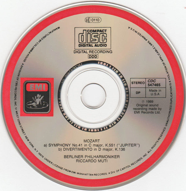 Mozart*, Berliner Philharmoniker, Riccardo Muti : Symphonie No. 41 'Jupiter'. Divertimento KV 136. (CD, Album, Club)