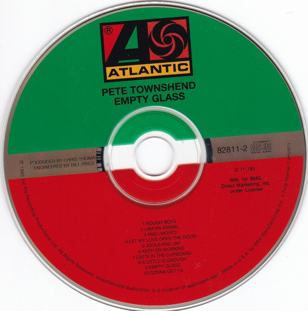 Pete Townshend - Empty Glass (CD, Album, Club, RE, RM) (NM or M-)
