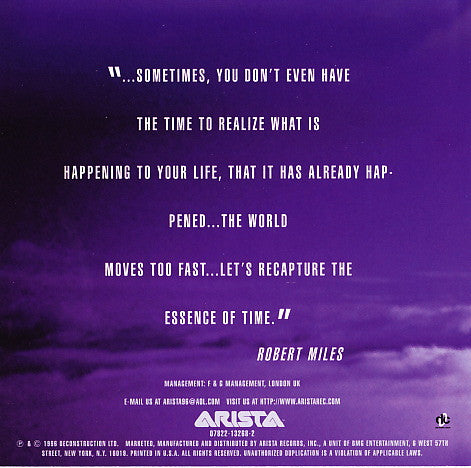Published by Jerk Awake (ASCAP) / EMI Virgin Music Inc., Future Furniture Music (ASCAP) / Hidden Pun Music, adm. by Warner-Tamerlane Publishing Corp. (BMI). Vocals for Red Parrott Management UK. Track 1 additional production for Sarm Productions. Tracks 2 and 4 remix and additional production for Def Mix Productions. Track 3 remixed at J.T. Company Recording Studio - Italy. From the debut album "Dreamland". ℗ & © 1996 Deconstruction Ltd. Marketed, manufactured and distributed by Arista Records, Inc. A unit of BMG Entertainment. Printed in U.S.A.