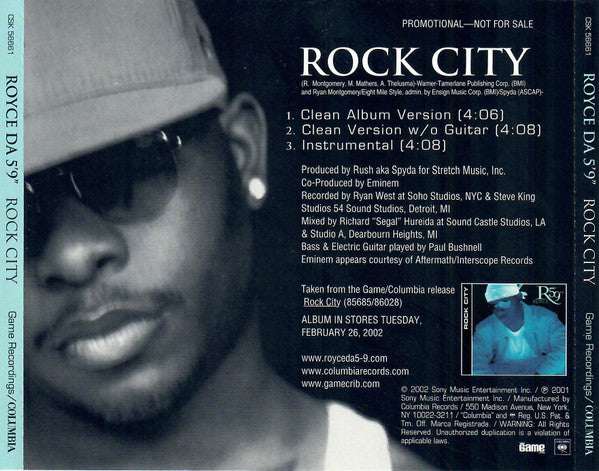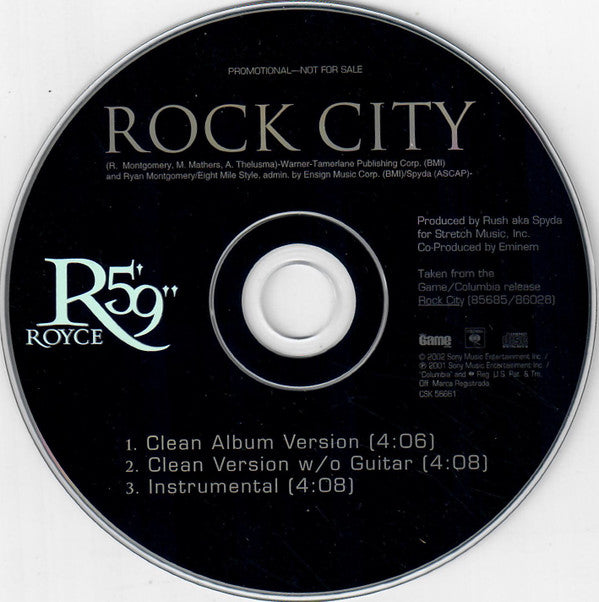 Royce Da 5'9" Featuring Eminem : Rock City (CD, Single, Promo)