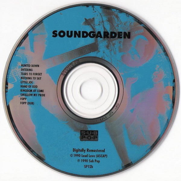 CD reissue combines Soundgarden's first two EPs 'Screaming Life' and 'Fopp'. Screaming Life recorded in 1987 at Reciprocal Recording, Seattle. Fopp recorded in 1988 at the Moore Theatre with the Dogfish Mobile Recording Unit. Additional Mixing at Pace, Portland and Velvetone, Ellensburg. Distributed by Caroline. Printed in Canada. This version states "Digitally Remastered" on the disc. There is a very similar version of this release, which has different printed information on the CD and back cover.