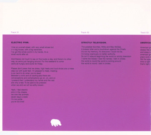 Tracks 1 and 4 recorded and mixed at Gravity, Chicago. Tracks 2 and 3 recorded at Inner Ear, D.C. and Mixed at Smart studios. Mastered at West West Side, NJ. Designed @ Public.