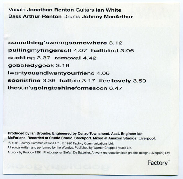 Recorded at Studio Studio, Stockport. Mixed at Amazon Studios, Liverpool. ℗ 1991 Factory Communications Ltd. © 1990 Factory Communications Ltd. Artwork reproduced icon graphic design (Liverpool) Ltd.