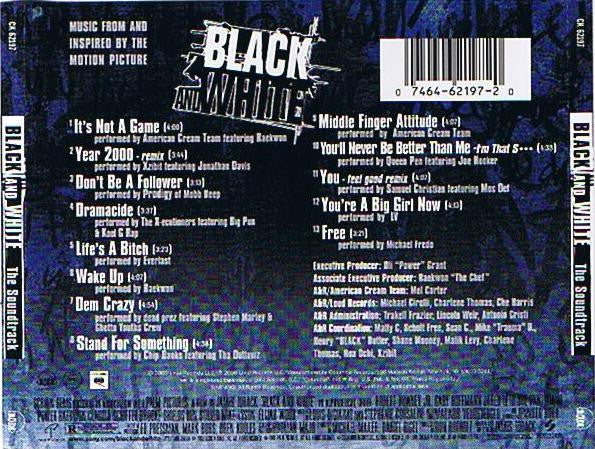 Title as written on cover and on disc: Music From And Inspired By The Motion Picture Black And White Title as written on spine of rear insert: Black And White The Soundtrack Catalog # as printed on rear insert and on disc: CK 62197 Catalog # as printed on last page of booklet: 62197 Track 1 - RZA is listed as a featured artist in the booklet but is not listed on the rear insert
