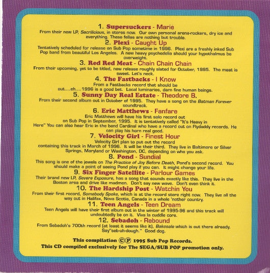 "This CD compiled exclusively for The SEGA/SUB POP promotion only."
