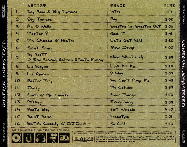 For Promotional Use Only/Not For Sale ℗© 2002 Universal Records, a Division of UMG Recordings, Inc. Printed in the USA. CD issued in standard jewel case with© tray card and back artwork.