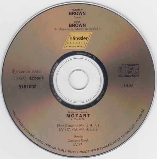 Wolfgang Amadeus Mozart, Timothy Brown (2), Iona Brown, Academy Of St. Martin-in-the-Fields* : Horn Concertos Nos. 1 - 4 (CD, Club)