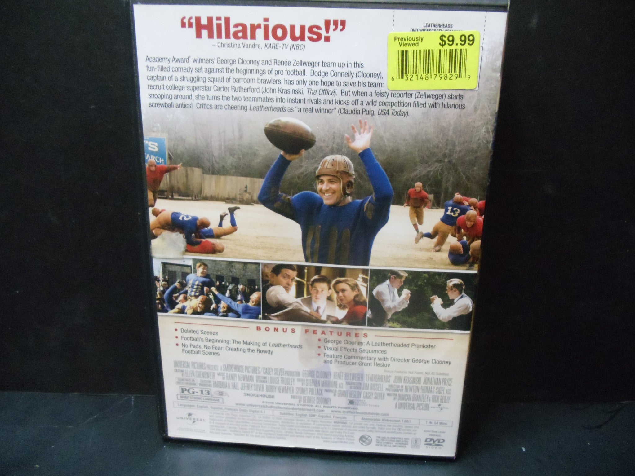 Academy Award winners George Clooney and Renée Zellweger team up in this fun-filled comedy set against the beginnings of pro football. Dodge Connelly (Clooney), captain of a struggling squad of barroom brawlers, has only one hope to save his team: recruit college superstar Carter Rutherford (John Krasinski, The Office). But when a feisty reporter (Zellweger) starts snooping around, she turns the two teammates into instant rivals and kicks off a wild competition filled with hilarious screwball antics! Critics are cheering Leatherheads as “a real winner” (Claudia Puig, USA Today).
