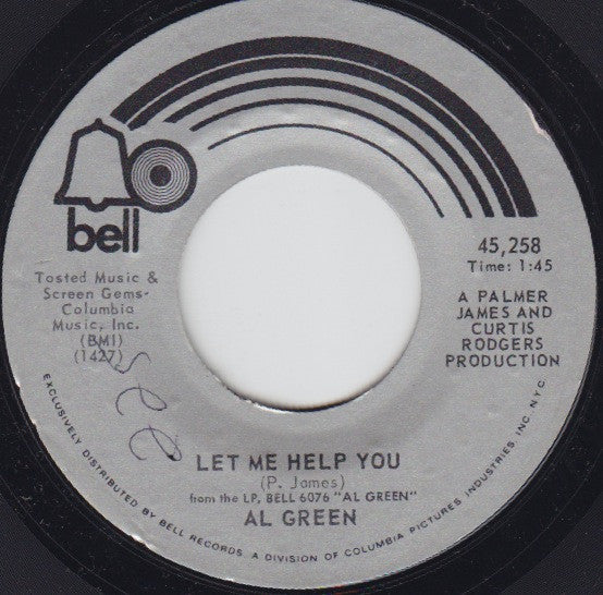 label variation: - Music publishing and licensee info spread out among six lines on left hand side - Production credits spread out over five lines on right hand side - Matrix numbers with dots and dashes - Catalogue number shown as Bell 45,258 - LP source mentioned below songwriter credits and above artist name