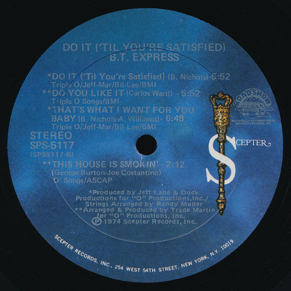 Blue color label and silver text with "[l28486" logo on label. The following credits and venues are given on the rear cover, but the function of the venue is not clarified. John Bradley Engineer At Ultrasonic Studios in Long Island Eddie Youngblood, Groove Studios, N.Y.C. Jim Zack, Bell Sound, N.Y.C.