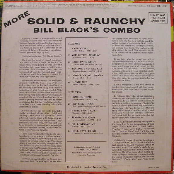 This LP was first issued March 1965 Title variation on labels: More Solid And Raunchy 65'