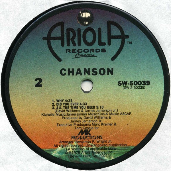 David Paich, Jeff Porcaro, Al McKay & Steve Porcaro appear courtesy of Columbia Records. Julia Tillman appears courtesy of Warner Bros. Records. Published by Kichelle Music/Jamersonian Music/Cos-K Music ASCAP Produced for MK Productions Recorded and mixed at Kendun Recorders Mastered at Allen Zentz Mastering Inc. © ℗ 1978 Ariola America, Inc. Another SW-50039 exists with identical label typesetting excluding 'arranger' credit.