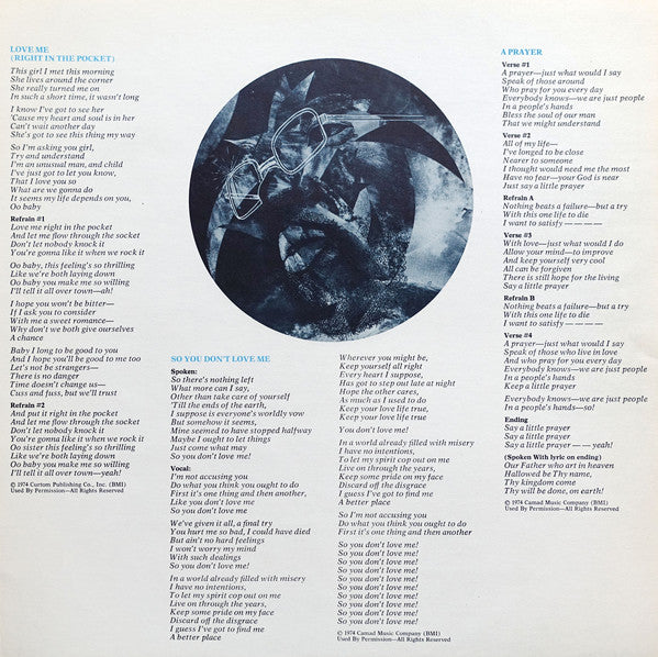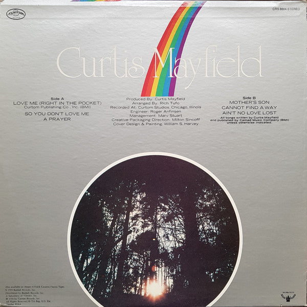 Sonic Recording Products, Inc. pressing denoted by "SON" etch in runouts. Label rim text set in mixed-case. Rim text with "810 Seventh Avenue" address, different from [r=9867353. Recorded at: Curtom Studios, Chicago, Illinois All songs published by Camad Music Company (BMI) unless otherwise indicated A1 published by Curtom Publishing Co., Inc. (BMI) © 1974 Buddah Records, Inc., a subsidiary of Viewlex, Inc. Distributed by Buddah Records, Inc. ℗ 1974 by Curtom Records, Inc. LP housed in a heavy cardboard (paste-on) sleeve and generic inner or black Buddah inner sleeve A lyric insert is included.