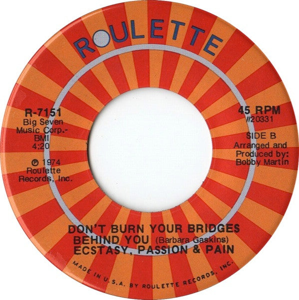 Ecstasy, Passion & Pain : I Wouldn't Give You Up / Don't Burn Your Bridges Behind You (7", Single)
