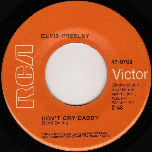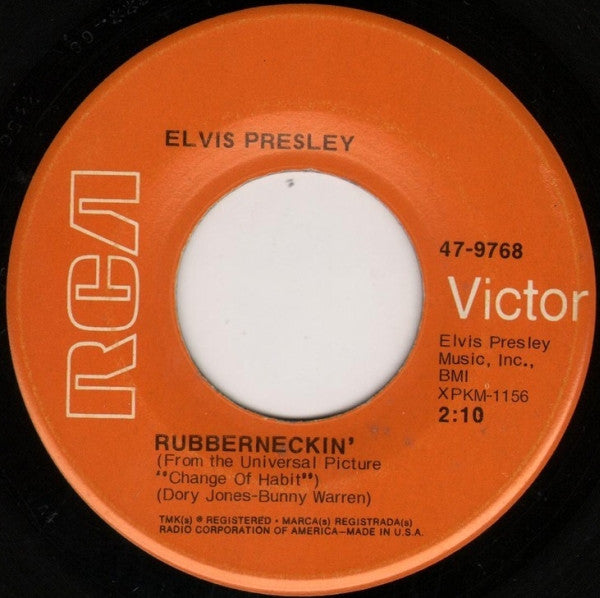 Side A published by Gladys Music Inc./B-n-B Music Inc. ASCAP Side B published by Elvis Presley Music, Inc. BMI Side B - From the Universal Picture "Change of habit". TMK(s) ® Registered Marca(s) Registrada(s) Radio Corporation of America - Made in U.S.A.