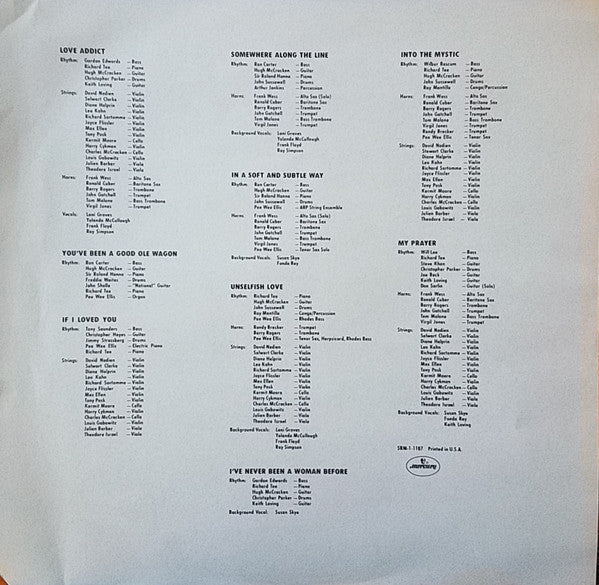 Ron Carter appears courtesy of Fantasy Records Gordon Edwards, Richard Tee, Christopher Parker appear courtesy of Warner Brothers Records Pee Wee Ellis, Randy Brecker appear courtesy of Arista Records Joe Beck appears courtesy of Polydor Records Came with a two-sided insert with musician credits for every song on one side and a black and white reproduction of the back cover photo on the other side. An Esto Production Recorded at The Hit Factory, New York, NY Except A3 recorded at The Record Plant, Sausalito Mastered at Atlantic Studios, New York Distributed by Phonodisc, Inc. ℗ © 1977 Phonogram, Inc. Printed in U.S.A.