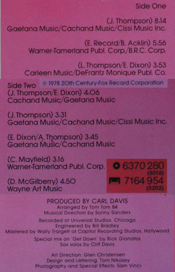 Recorded at Universal Studios, Chicago ℗1978 20th Century Fox Record Corporation