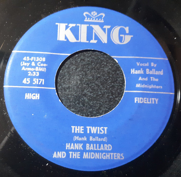 Side A: "Vocal by Hank Ballard And The Midnighters" displayed with "Hank Ballard" presented in a larger font. Side B: "(Jay & Cee-" and "Armo-BMI) on separate lines. Group name in all caps