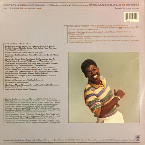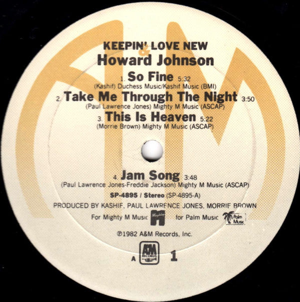 Europadisk pressing. "A" to the left of A&M logo at bottom of labels. A1, B3: Duchess Music/Kashif Music (BMI) A2 to A4, B4: Mighty M Music (ASCAP) B1: Duchess Music (BMI) B2: Duchess Music (BMI)/Mighty M Music (ASCAP)