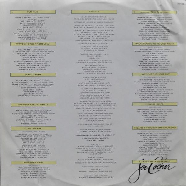 Label variant Monarch pressing Cornell Dupree, Stephen Gadd, Richard Tee, and Allen Toussaint appear courtesy of Warner Bros. Recording, Inc. Donny Hathaway appears courtesy of Atlantic Recording Inc. David "Fathead" Newman appear courtesy of Horizon Records. Rick Danko appears courtesy of Arista Records. Muscle Shoals Horns appear courtesy of Ariola America Inc.