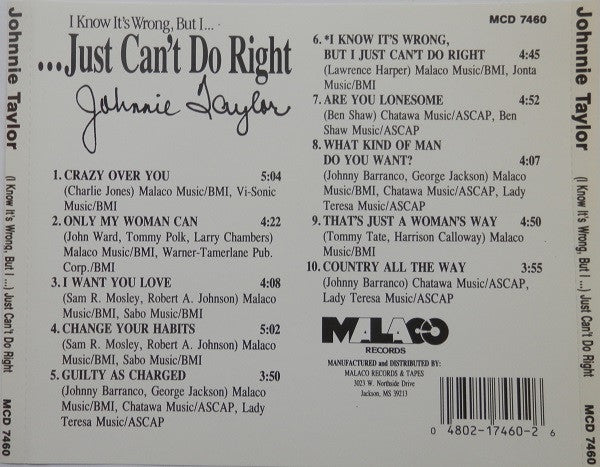 Johnnie Taylor : (I Know It's Wrong But I ...) Just Can't Do Right (CD, Album)