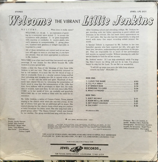 Lillie Jenkins : Welcome The Vibrant Lillie Jenkins (LP, Album)