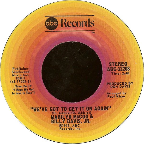 Pitman pressing With A side designator Publishers: Side A: Groovesville Music Side B: Blackwood Music Inc. From the Forthcoming LP "I Hope We Get To Love In Time" ℗1976, ABC Records, Inc.