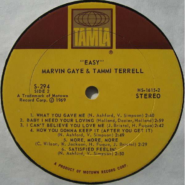 No pressing plant mark in runouts. RCA Matrix number (X4RS-3381-1 G / X4RS-3382-1 G) is stamped; all else etched. TS294 on cover and spine; 294 on liner, S-294 on labels. © 1969 Motown Record Corporation, Detroit, Michigan 48201 Printed in U.S.A.