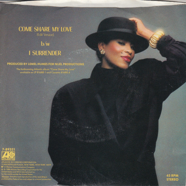 Edited from Atlantic LP 81688 - "Come Share My Love". Side A published by Warner-Tamerlane Publishing Corp. / Buffalo Music Factory; side B published by Mardago.